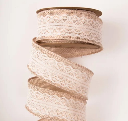 Juta szalag csipke díszítéssal