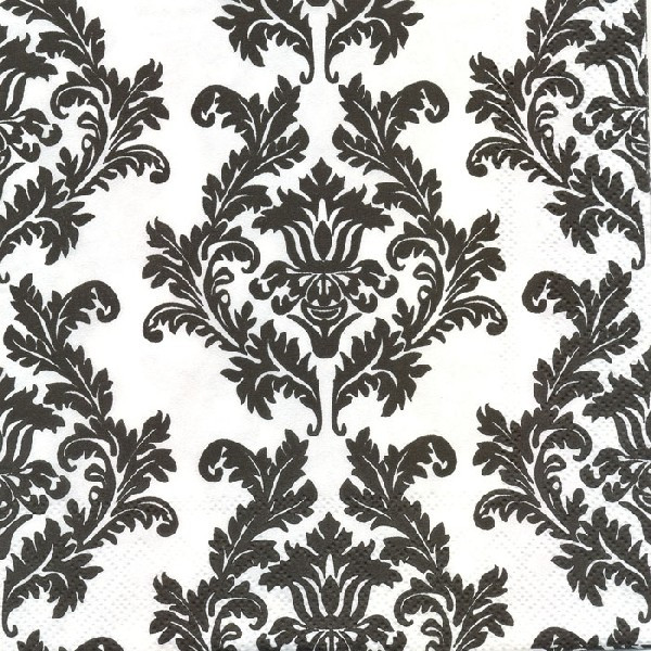 fehér alapon fekete mintás szalvéta (33x33), 3 rétegű, 20 db