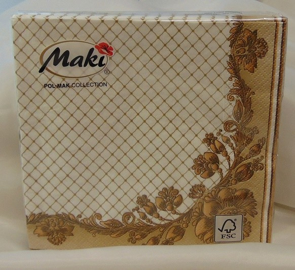 fehér szalvéta arany sarokmintával, 3 rétegű (20 db)