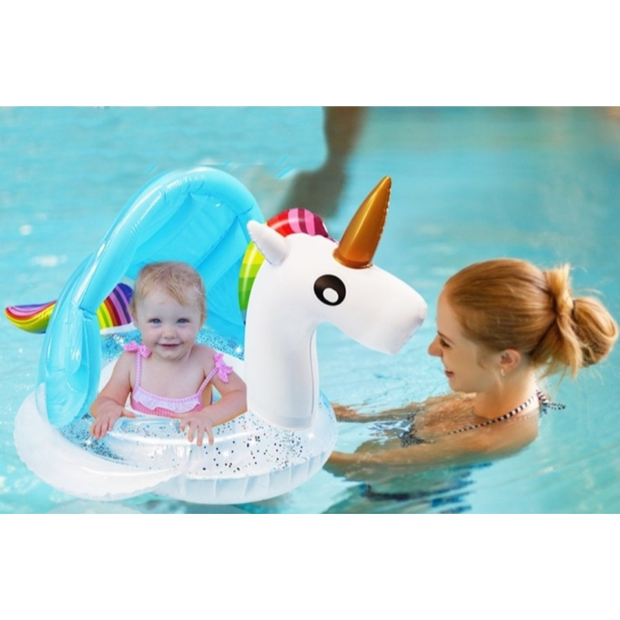 Az Unikornis tetős gyerek beleülős úszógumi egy csillogó élményt nyújt szinte minden kisgyereknek. A színes és gyönyörű dizájnnal rendelkező Unikornis úszógumi egy mindenki számára vonzó játék a vízben. A termék alapja egy tervezett tetős fedél, ami védelmet biztosít az erős napfénytől és a vízben eltöltött hosszú órák alatt tartósan használhatóvá teszi azt. Az Unikornis úszógumit azok a szülők és gyerekek szeretik leginkább, akik imádnak úszni és ki szeretnék élvezni az érzést, hogy egy gyönyörű állattal játszanak a vízben. A csillámló kiegészítőkkel ellátott Unikornis úszógumi