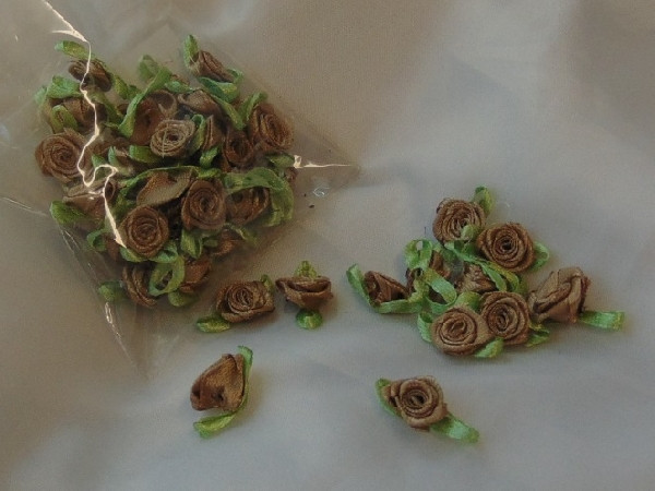 szatén rózsafej levélkével, cappuccino (kb. 50 db)