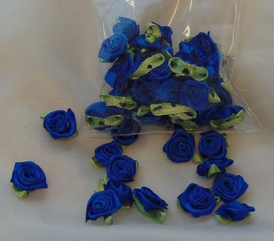szatén rózsafej levélkével, királykék (kb. 50 db)