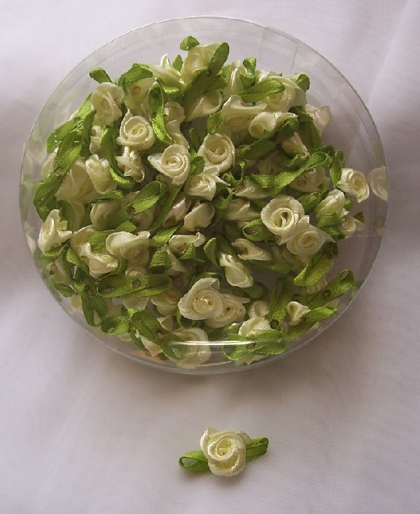 szatén rózsafej levélkével, krém (kb. 50 db)