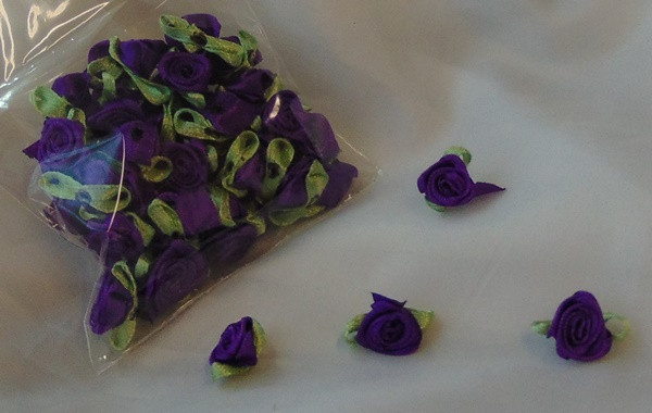 szatén rózsafej levélkével, s.lila (kb. 50 db)